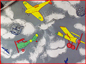 | Book covers and toy boxes. |
